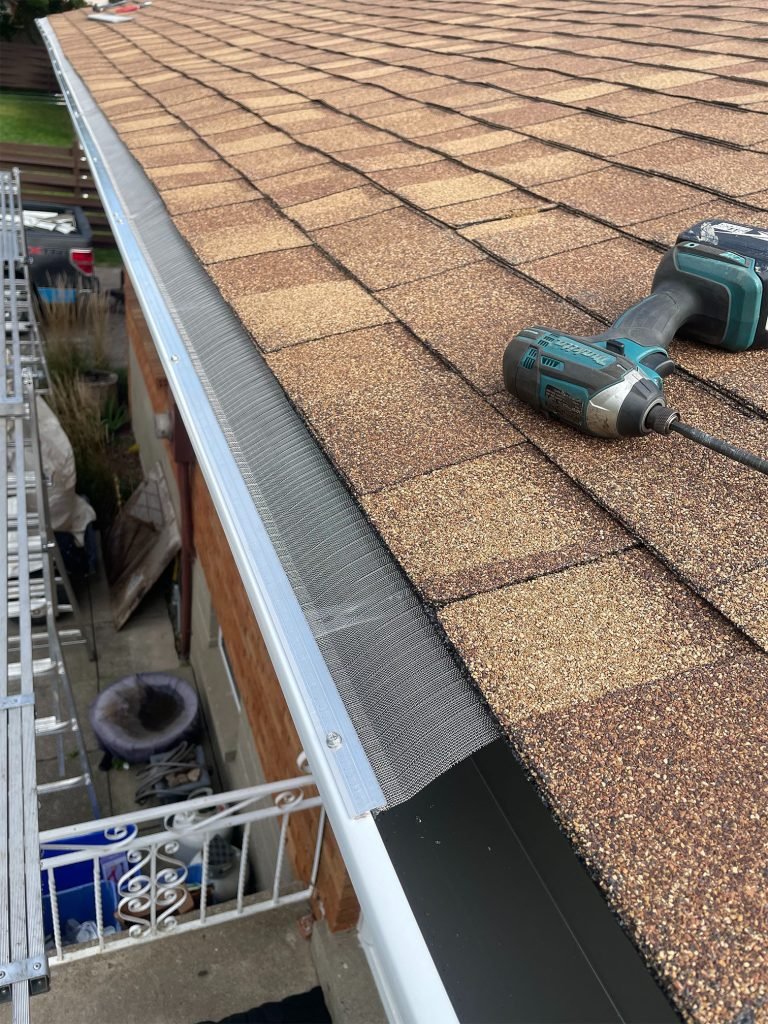 Professional gutter guard installation preventing debris buildup and improving drainage.
